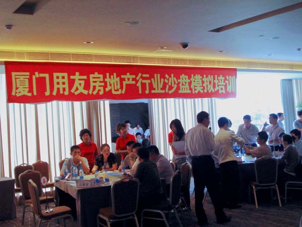 10月14日,华远集团邀请用友公司,在华远旗下温德姆和平国际大酒店举办“厦门房地产行业沙盘模拟培训”。本次培训的讲师为硕士生导师、国内最早的沙盘研发及分析软件开发者杜锐教授。杜教授以其丰富的学识配合沙盘模拟这一直观教学方式,带领厦门房地产行业的精英们进行了一场涵盖项目开发周期管理、地产项目的融资、投资管理等多个重要模块的实战模拟,使学员在战略制定能力、多项目管理能力和业务规划能力等方面得到了较大的提升。