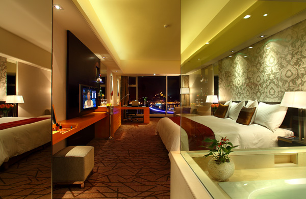 十八层——二十五层:为行政楼层,总客房数量为154间,海景房为73间。其中23层及24层为行政酒廊。