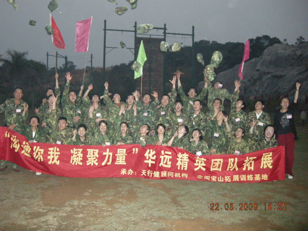 2009年3月21日、22日,厦门华远集团全体员工至泉州宝山志闽拓展训练基地进行了为期一天的拓展训练。训后全体人员深刻体会到:不可能是可以变为可能,只要锁定目标,坚定信心,勇往直前,就能实现自我超越。通过此次拓展训练,加强了全体人员的执行力、团队凝聚力和企业向心力;同时也提高了团队协作能力。培训结束时“华远,我爱你!”响彻天空,帽子飞扬,全体人员欢呼雀跃久久不愿离去。带着这份激情,全体华远人将同舟共济更好地展开2009年华远的新征程。