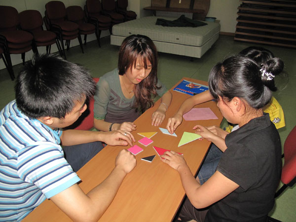 7月9日,华远集团继“员工精神”系列培训后,成功举办“七巧板”拓展训练。该项训练是以七巧板为道具,模拟公司决策层及各分公司、各部门的沟通协作,通过团队整合完成一系列复杂的任务的过程。活动现场气氛十分热烈,在热身活动中各位学员都已积极投入、热情高涨。在七巧板模拟训练游戏中,大家更加努力认真地对待自己的任务,千方百计寻找各种办法实现“订单”。该游戏也十分直观、真实的投射出了每位员工的工作状态。