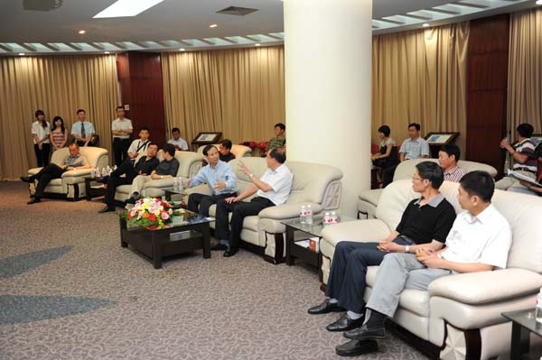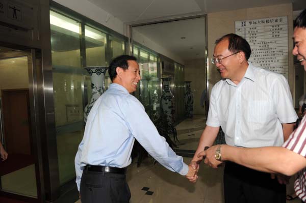 6月27日下午,前来参加“昆明·五华2010年厦门招商推介会”的昆明市五华区金幼和区长一行二十多人莅临我司总部华远大厦考察访问,我司董事长严文亮先生及总经理助理、房产部经理等人参加了接见会。严文亮董事长对远道而来的嘉宾表示真诚的问候,向来访的领导嘉宾介绍了我司的发展历程,并就我司正在建设的南昌和平国际大酒店项目和昆明项目的建设情况向金区长做了汇报。会后,金区长向严文亮董事长赠送了纪念品,代表团一行人随后参观了我司总部的办公区域。